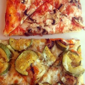 Na večeru na terase si dáme zabaliť 4 kúsky pice a je toho veľa.