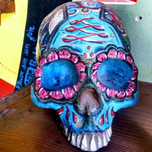 V obchode s meskalom skúšame aromatizované meskaly. Jamaika (hibiscus) s medom a kakaový. Pijeme to tekvičkových pohárikov. Ten s vylúhovanými kakaovými bôbmi je celkom zaujímavý, len ho akurát nemajú vo fľašiach.