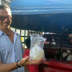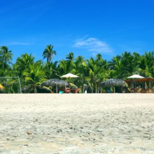 Ráno vraciam fľašu od piva a bandasku z vody. Zo zvedavosti sa idem pozrieť ulicou ku koncu pláže, kde sme nikdy neboli. Objavím celkom fasa bio obchod a kúpim koláčiky na raňajky. Nie je to tu ani tak drahé, majú aj 15 ročný mezcal. Je tu zopár plných reštaurácií – raňajkovníctiev. Normálne mi je ľúto, že odchádzame. S Katkou okoštujeme banánovo-arašidový páj a obom nám je ľúto, že odchádzame. Chvíľu sa pohrávame s myšlienkou, že zostaneme ešte jeden deň, ale sme už dosť nachystaní, tak berieme veci a šlapeme našou ulicou do kopca. Tam to vyzerá, že to končí slepou a navigácia si zase dáva načas. Už je celkom teplo a nechce sa nám šlapať do konca, keď to tam vyzerá, Že to končí stavbou. Nikde nikoho tak čakáme chvíľu a pýtame sa okoloidúceho pikapu. Tí nám povedia, že sa stavba dá obísť a naložia nás do malinkej kabínky. Ruxaky hodíme na drevené hranoly na korbe. Keď nás vykladajú pomáham K s vakom a típci skoro odídu s mojím veľkým vakom. Na hlavnej dvojprúdovke nie je žiaden tieň, tak dúfame, že bus pôjde čoskoro. Trošku sme rozčarovaní ako nás recepčná z jogového hotela poslala, keď oveľa lepšie by bolo ísť tak, ako sme prišli. Takto sme išli zbytočne do vysokého kopca.