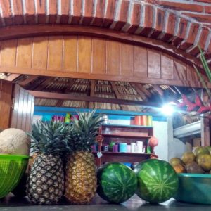 Cestou späť sa zastavíme na menučko u babky. Riedka rajčinová polievka plná kolienok, parádna voda s guajáva džúsom a kuriarko v čiernej pikantno kakaovej omáčke (mole) stojí 45 Pesos. K si dá obľúbenú tlajúdu so syrom a klobáskou (40). Jej vodu nerátajú, ale necháme im za ňu na tip.