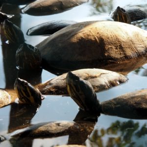 Kúpime si lístky a ideme chodníkom lemovaným teráriami s rôznymi druhmi korytnačiek. Na konci – pri mori sú rozostavané veľké akvárka, asi pre morské korky. V malých akvárkach a pod stromami sú ďalšie korytnačky. V hlavnej budove sú veľké akvárka s rybkami a malými morskými korytnačkami. Veľkú koženú, na ktorú sme sa najviac tešili tu majú len ako maketu na znázornenie veľkosti oproti zelenej a karete.
