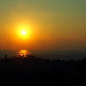 Západ je úplne super mega špica. Ľudia sa povyzliekajú a naskáču do vody. Jedna nahá ženská akrobatka jogy urobí mostík hlavou k moru. Tak s K žartujeme, že je zle otočená, lebo vietor fúka od mora a ona mu otŕča nesprávny koniec.