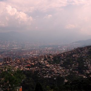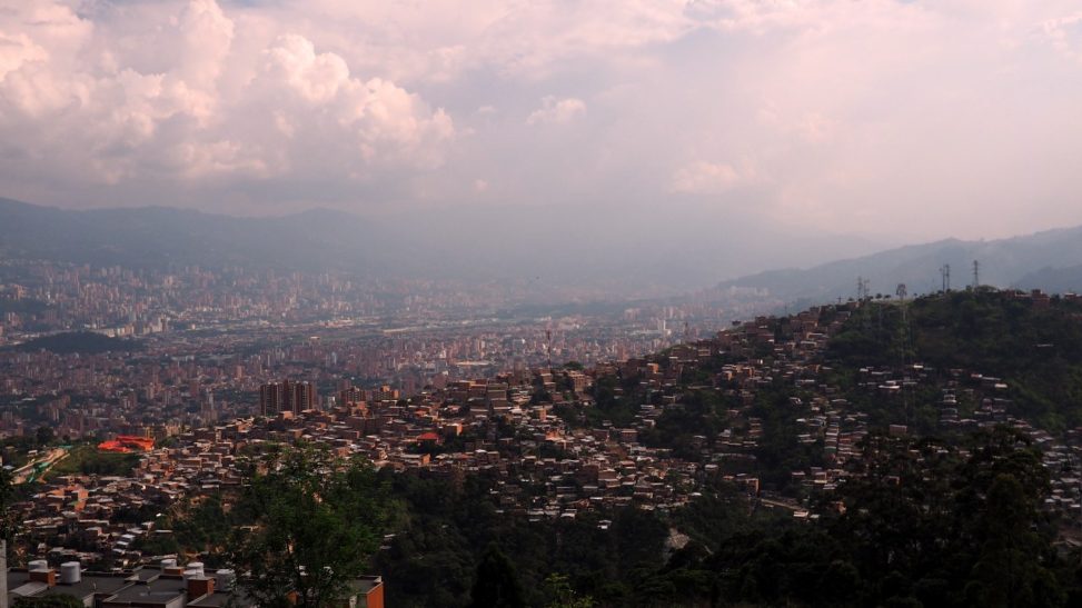 Z letiska ideme busom. Do prvého sa nezmestíme, ale druhý nás už berie. Feši rozdáva číselká, že kto všetko sa zmestí do minibusu. Je už večer a z cesty nad mestom vidíme svetlá mesta (Medellín) ako hviezdy. Je to fascinujúce ako hviezdna obloha. Podobné, ale iné ako v La Paze. Toto je viac hviezdne, nekonečné a biele bodky. La Paz bol viac ako vysvietené mesto.