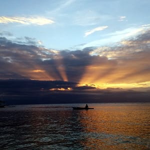 Na západ slnka sadneme prezlečení do baru. Trošku nám mrholí. Decká posielajú fotky z Manily, vykúpili hádam všetok rum a z Rasťa sa stal odborník na Uber.