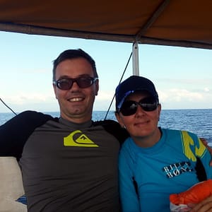 Večer dostaneme fotky od párika z Číny. Guľokopka fotila na iPhone v podvodnom púzdre z HongKomgu – pozor, nie Číny. Dnes sme nešli potápať, lebo som nechcel ísť s týmito nebezpečnými expertmi. Ale inak sú milí.