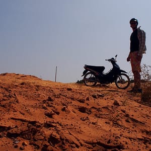 Po obvyklých raňajkách dnes spestrených kompementárnym ľadovým zeleným čajom sa pýtame na moped. Mladá domáca vyzerá prekvapene, že či ho chceme teraz. Jasné že teraz, však sme si privstali kôli tomu. Chceli sme vyrážať už o ôsmej (tak sme sa dohodli s jej manželom). Bohvie koľko je teraz hodín, možno už aj pol deviatej. Ideme sa pobaliť, aby sme jej dali čas na splašenie mopeda a keď výjdeme von, tak už nás jeden taký čaká. Klasický Honda Wave, i keď toto, napriek len 7000km najazdeným kilometrom, vyzerá byť starší model. Vizuálne kontrolujeme stav paliva – je tam, tak zisťujeme, kde dotankujeme. Že hocikde pri ceste, kde čapujú. Pekne, to nám bolo aj jasné, len sme nevideli čapovanie až tak často a očividne ako v Kambodži. Vyzerá byť dosť benzínu, ale po poslených zážitkoch s tlačením, nechceme nič riskovať a chceme vymáknuť prvú benzínku.