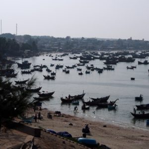 Príchod sledujeme navigáciou a vykladajú nás 1.1km od miesta s mnoho hotelmi. Pýtame sa na lístok do ďalšieho mesta a všimneme si hotel priamo na zastávke. Podľa GPS sme ale takisto ďaleko od mora ako keby sa 1.1km prejdeme paralelne s plážou, pred nami sú na pláži veliké hotely, zajtra by sme zase šlapali 1.1km naspäť na bus, cena za ubytko je fajn ($6) tak zostávame priamo na zastávke. Na štvrtom poschodí. V bočnej uličke za rohom je pizzoška. Majú výbornú pizzu, nie až taký oslnivý burger, mega veľké mojito (30000d) a ovocné víno, ktoré K veľmi chutí. Jediný problém je, že je to celé neslané, tak si pýtame soľ, no do konca jedla žiadna nepríde. Škoda, ale aspoň nám tlak nestúpne. Ani pri účte.