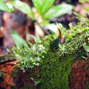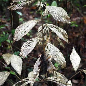 Vyrážame teda na náš 6km okruh trošku neskôr. Po daždi je krásne svetlo, vidíme veľkéko modrastého vtáka – niečo medzi bažantom a kohútom na steroidoch, viacero chlpatých húsenic a zase raz mikro veveričku. Vyzerá, že po daždi je viac zverstva vonku a asi používajú chodník, aby nenamokli.