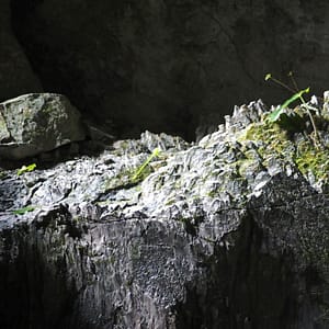 O štvrtej vyrážame na netopiere. Trojkilometrová cestička vedie ku Jelenej jaskyni, pred ktorou je vybudovaný amfik. Pod strieškou je telka, ktorá zobrazuje živé dianie v jaskyni, prípadne ústie jaskyne, že či už netopiere vyletujú. Predávajú tu aj nealko, čím si nás vôbec nezískali, lebo vodu máme vlastnú.