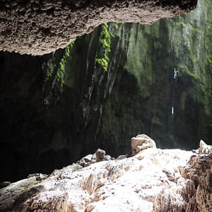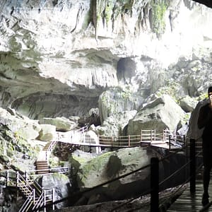 Po obede ideme o 14:00 do Jelenej jaskyne (Deer Cave). Sprievodca Peter našej veľkej a nehomogénnej skupinke cestou ukazuje chlpatú húsenicu, kožu zo zvlečeného pavúka, zelenú jaštericu a malého dragončeka (jaštera s pichliačmi na chrbte). O hlasový doprovod sa stará malý ukecaný Ind, ktorý nezavrie klapačku ani keby mu tam netopiere mali nasrať. Ide s nami aj veľká turistka z Nemecka. Inžinierka v autopriemysle – veď ako inak, keď je Nemka. Po troch kilometroch nám začína mierne pršať. Jelenia jaskyňa je to preto, že sme vysoká chodila olizovať soľ, ktorá sa vypotievala z guana nakadeného miliónmi netopierov. Tie netopiere totiž zožerú 22ton hmyzu za večer, tak majú čo trúsiť na zvedavých turistov celý deň. Jaskyňa je brutálne velikánska, ma niekoľko NAJov. Vo všeobecnosti bola najväčšia, pokiaľ v 2009 neobjavili vo Vietname ešte väčšiu. Tá ale ešte nie je prístupná verejnosti. Ďalšia jaskyňa Lang – podľa objaviteľa je malá a s peknými kvapľami. Veľká 1.jasnyňa bola bez dekorácií. Celý krasový proces je tu urýchlený teplotou a zrážkami, takže sa kvapľe ani nestíhajú vytvárať. Veľkosť jaskyne súvisí s kvalitou vápenca, ktorý je jemný a pevný, takže sa strop tak neprepadáva.