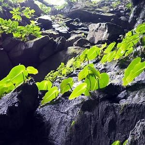 Tak teda spravíme ako nám hovoril, odbočíme na jednu zo 4 odbočiek botanického okruhu (cesta do jaskyňe okruh pretína stredom). Hordy z netopierov po nás chvíľu neveriacky pátrajú svojimi svetielkami, že sme odpočili z cesty do centrály, no my zdrháme z ich svetiel a snažime sa oči prispôsobiť vzniknuvšej tme. Až do toho momentu, kým sa K nezakvačí do akejsi pichľavej lianu. Potom idem ja s okuliarmy a čelovkou ako prvý, nech detekujem nebezpečenstvo nad chodníkom. Z času na čas vypneme svetlo a obezráme svietiace veci. Je kopa svetlušiek. Svietia niektoré oplesnené dosky na chodníku, tlejúce lístie a konáriky mimo chodníka. Vidíme peknú veľkú pokrútenú lianu, ktorá vyzerá, akoby ju niekto nastriekal foskorejúcou farbou. Je už dosť tma a zvuky z lesa znejú stále strašivejšie a hrôzostrašnejšie, tak to pri jednej strieške otočíme. A ideme späť. Tu zase začnú ponad nás poletovať netopiere, tak si na ne Kvytiahne dáždniček. Lúč jej svetla z čelovky je tak zhora prikrytý, ale svetlo dole stačí. Takto aspoň nevidí toľko netopierov a keď tak, tak sa hádam od dáždnika odrazia.