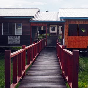 Zastavíme sa v dedine, ktorú ešte kedysi Briti postavili ako trhovisko, aby ukotvili kočovné lokálne obyvateľstvo. Vyzerá, že sa im to podarilo lepšie ako u nás s Cigánmi, lebo ich betónové longhausy vyzerú celkom zachovalo. Je nedeľa, trh je zavretý, ale aj tak predáva 80% stánkov, K očaria semienkové gorálky. Stretneme tam aj manželský pár z Košíc s dcérou vo vývoji. Cez pereje chodievame tak, že dedko to loďke pekne vykúri, aby sme mali rýchlosť, potom vytiahne motor z vody von, aby sme neprišli o vrtuľku a keď začneme zastavovať mladý nás paličkou odtláča, aby nás prúd nezobral späť.Spomíname mi na naše fauxpas s vyvrátením člnku v Kasseli. Pereje boli v tom prípade zboku.