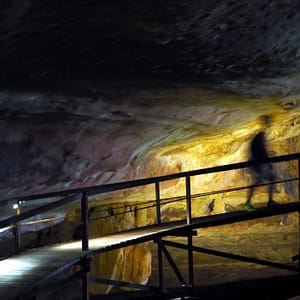 Pokračujeme riekou a kalná voda sa v prítoku zmení na priezračnú. To bude z našej ClearWater Cave (jaskyňa čistej vody). Rieka stále tečie cez jaskyňu a vidno ako postupne časom vyhĺbila koryto aj do hĺbky aj to bokov. V priereze to vyzerá ako kríž hore nohami. Najprv sa rieka zarezávala len do dola, keď sa sediment usadil na dne, začala rezať do bokov a keď bol sediment preč, zase rezala do dola. Táto jaskyňa sa mi páči asi najviac. Smerom dnu ideme popri rieke, naspäť sa vraciame popod strop. Je to tu pekne vysvietené a správny pomer medzi majestátnou veľkosťou a dekoratívnou výzdobou.