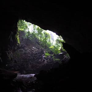 Naspäť sa rozhodneme ísť inou, dlhšou cestou, že aby sme sa vyhli davom. Celkom sa stmieva tak náš úprk už takmer nočnou džungľou nadobúda dramatické rozmery. Sme sami, cválame obklopení kadejakými divnými zvukmi. Už len čakáme, či nezačujeme niečo ťažšie, nejakú opicu. V jednom úseku cesty, ktorá je už len vyštrkovaná nám niečo 4ohé ukazuje cestu. Je to asi luwak. V rýchlosti prepásnem odbočku a ženiem nás do 1.4km dlhej slepej cesty. Našťastie to K ju zbadala a podarilo sa nám správne odbočiť, inak by to bolo vážne drsné. Neskôr z mapy usúdime, že sme boli na okruhu L, ktorý možno robiť bez vodcu. Niektoré chodníčky su voľne prístupné, do jaskýň sa smie iba so sprievodcom.