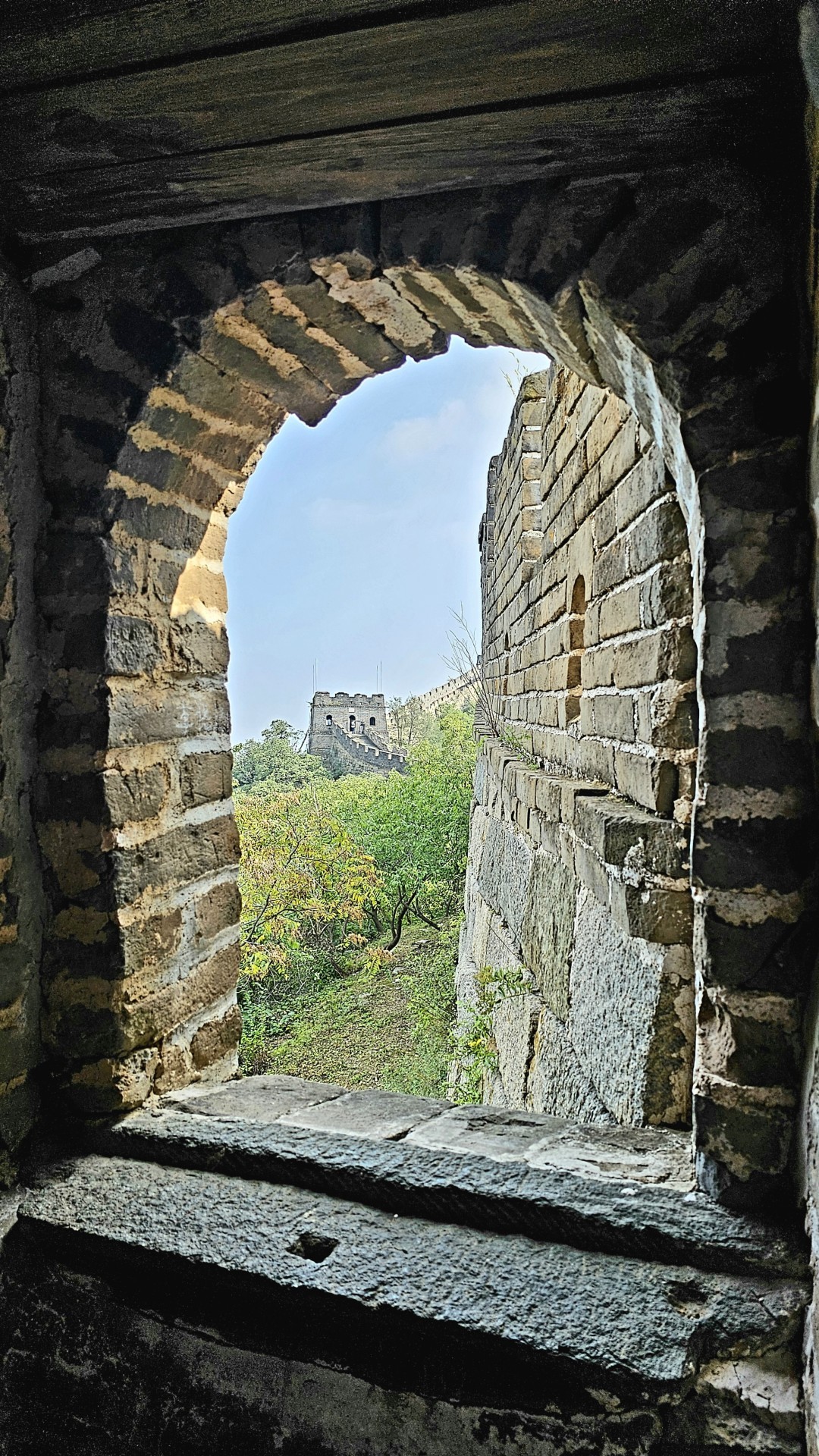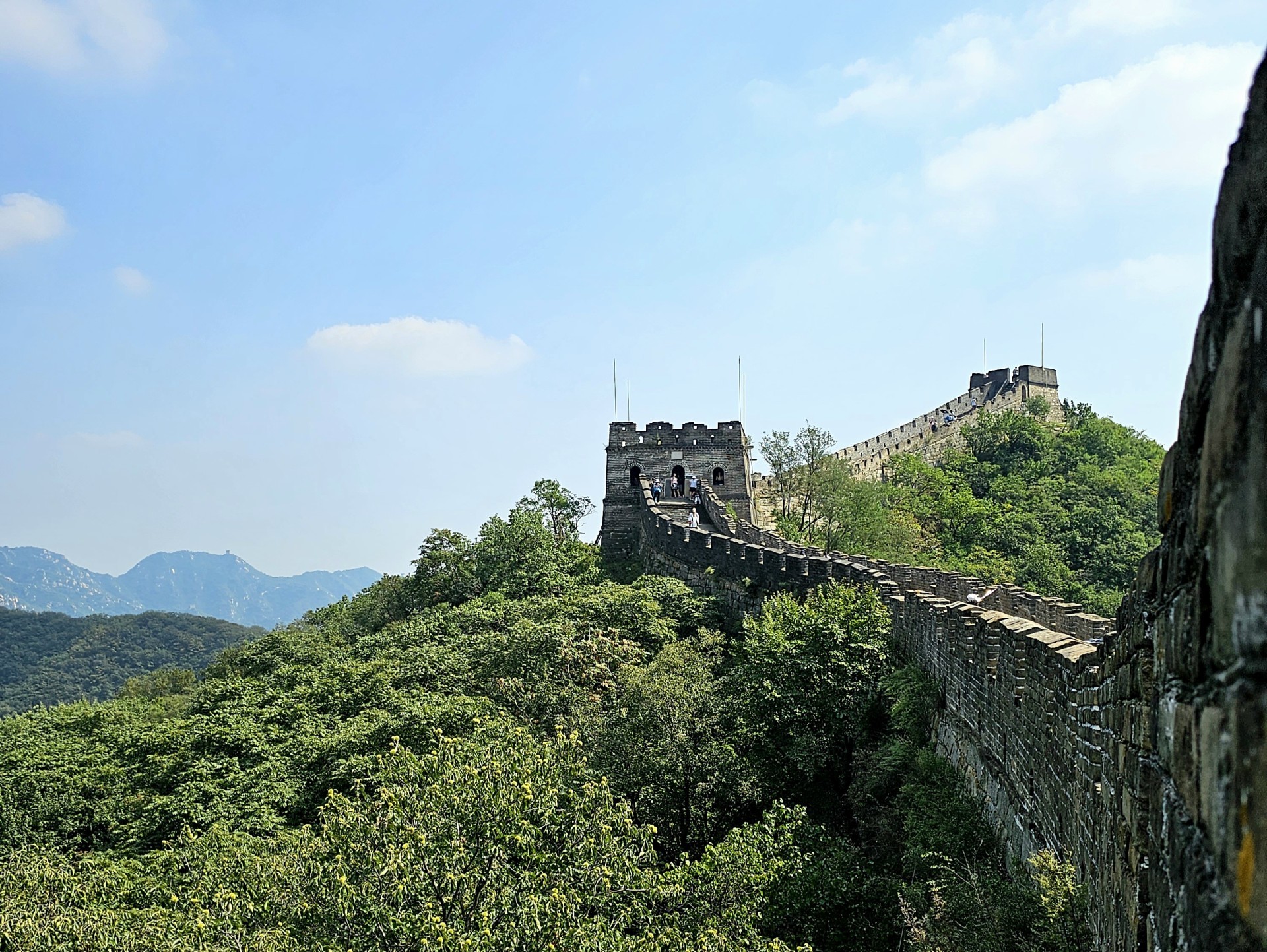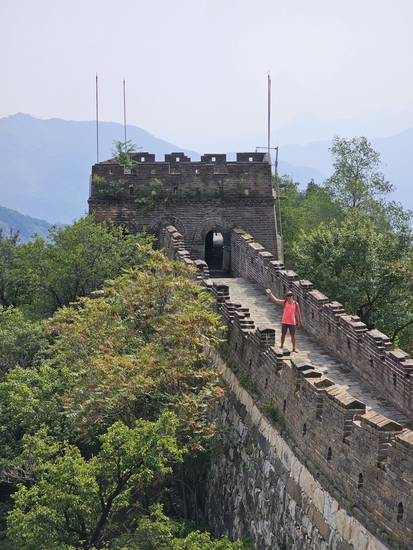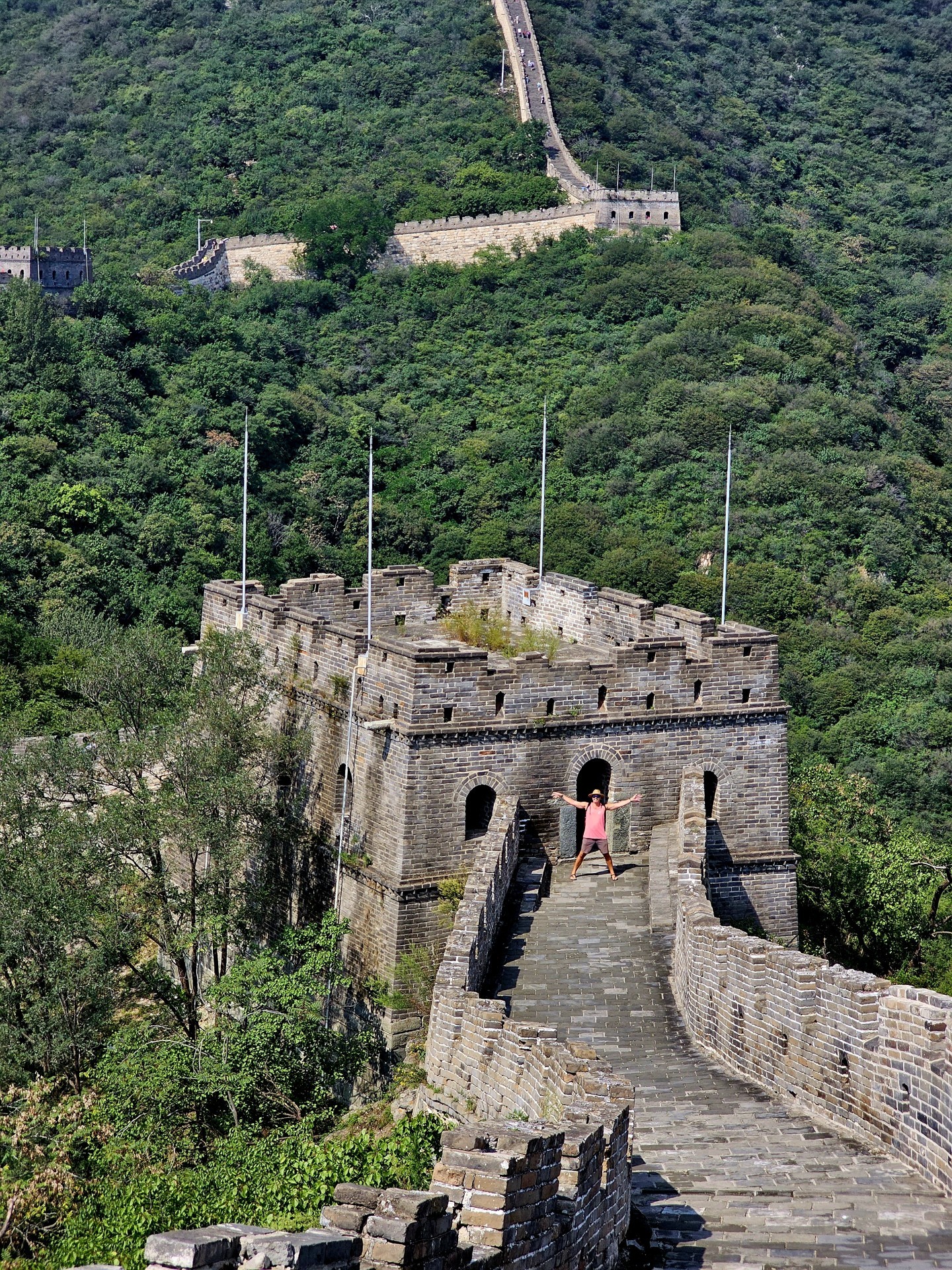 Do 50 minút prehopkáme ku poslednej veži č. 20, nie je tu veľa ľudí. Na jednom mieste vyjdem až na hradby a kochám sa pohľadom nadol, keď sa ku mne vydá malá mladá Číňanka. Nemám sa jej na úzkom mieste ako vyhnúť a tak čakám, že to pochopí, cúvne a pustí ma von. No ona nie. Rozhodne sa ma obkročiť. Pevne sa nalepím na hradbu lebo hrozí, že ak padne, tam na stiahne. Držím sa ako kliešť a čakám kým pochopí, že je to pekná blbosť. No ona sa nacapí na mňa a prešuchne sa poza mňa bez toho, aby spadla. V šoku rýchlo zdrhám na normálny múr, rád, že sa nikomu nič nestalo.