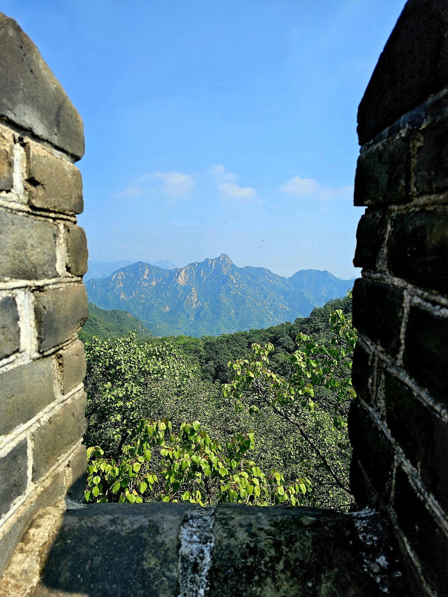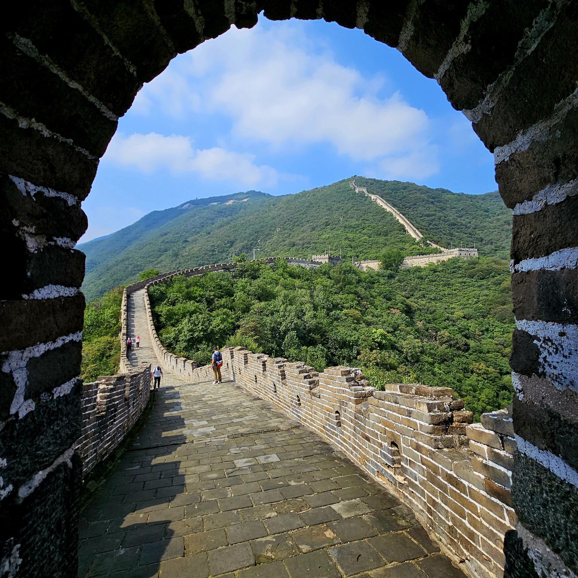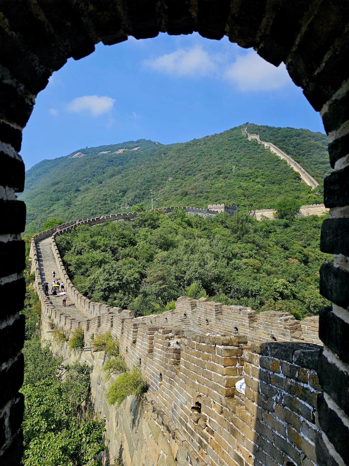 Je to celkom pekné i keď múr sa nám zdá úzky. Okolité kopce pripomínajú bralá okolo Zadaru, no všade, kam oko dovidí sa tiahne múr. Lístie sa už pomaly začína sfarbovať, no ešte tipujem 2-3 týždne by sa zišli, aby to bolo pekne farebné. Je celkom teplo a tak veľa ľudí postáva vo vežiach, kde je tieň a fajne prefukuje. Obraciame sa späť.