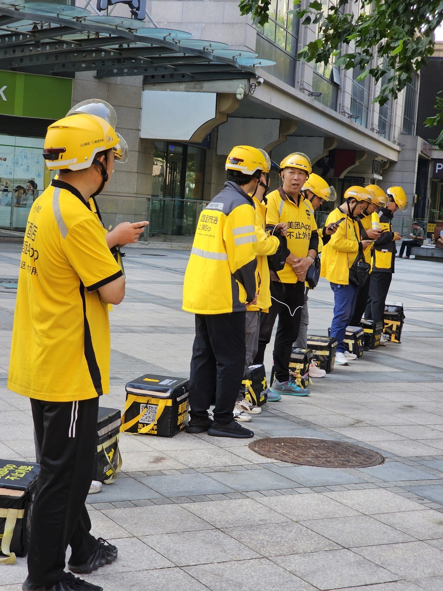 Jetlag ešte stále dáva zabrať, preto sme si bookli neskorší bus. Prvý ide 08:00 a náš 10:00. Na autobus je to metrom č. 2 jedna zastávka. Inštrukcie nám nie sú úplne jasné, ideme za hordami okolo Swissôtel a nikde nevidíme žiaden avizovaný StarBucks. Na recepcii nás pošlú opačným smerom. Medzitým vybingujem SB a na križovatke už viem, kam sa vybrať. Na ďalšej križovatke na nás radostne mávajú pajkovia v červených vestičkách Mubus, odchytávajú všetkých podozrivých Nečíňanov a turisticky vyzerajúcich Číňanov. Zaregistrovaní sa ideme obzrieť nenápadný StarBucks. Dáme si raňajkové sendviče ale kávu preskakujeme. Máme nachystané zelené čajíky. Toalety tu nemajú, treba si ísť von, nájsť verejný. Postávame vonku pred SB a pozeráme pajkov v žltých uniformách, ako stoja nastúpení pred motorkami, fotia sa a počúvajú príhovory lídrov. Sú to deliveráci jedla, z nejakej online služby. Tri skupinky, priemerne 15 chlápkov.