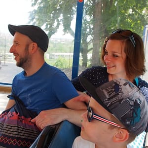 Vo vláčiku sa mi páči, ujme sa nás 5 ročný chlapček Adamko a názorne ukazuje to, čo počujeme z reproduktorov. Park vyzerá super, hore na hrade sa zastavíme, vypustíme ohriate pivko a popozeráme výhľady. Zvezieme sa aj dole a navštívime krčmu pod agátmi. Je parádne počasie a vidíme viacero mimookresových áut s turistami. Dokonca aj maďarské ŠPZky. Veľmi sa mi páči a zdá sa mi to aj akosi lacnejšie ako v PD. Presúvame sa do parku na piknik. Cestou ešte pribalíme pre Kubka kamoša – 3 ročného Peťka s ockom.