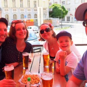 Mierne dochrámaní po včerajšku sa po výdatných čízkejkových raňajkách presúvame na námestie pred divadlo A. Bagara a čakáme na výletný vláčik. Čakanie si krátime poprávkovým pivkom v čínskej reštaurácii.