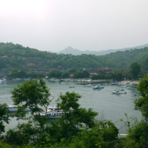 V Padangbai nás vyložia pri veľkom prístave, tak hneď zisťujeme ceny na Gili v búdke tváriacej sa ako Perama. Tam chcú 250000R za rýchlu loď na Gili, alebo 200000 za pomalú. Pomalá znamená 7 hodinové kombo lodných a pozemných presunov. Rýchla loď by mala trvať 1.5 hodiny. Rozdiel v číslach sa nám zdá minimálny, ale s cenou ešte nie sme spokojní.