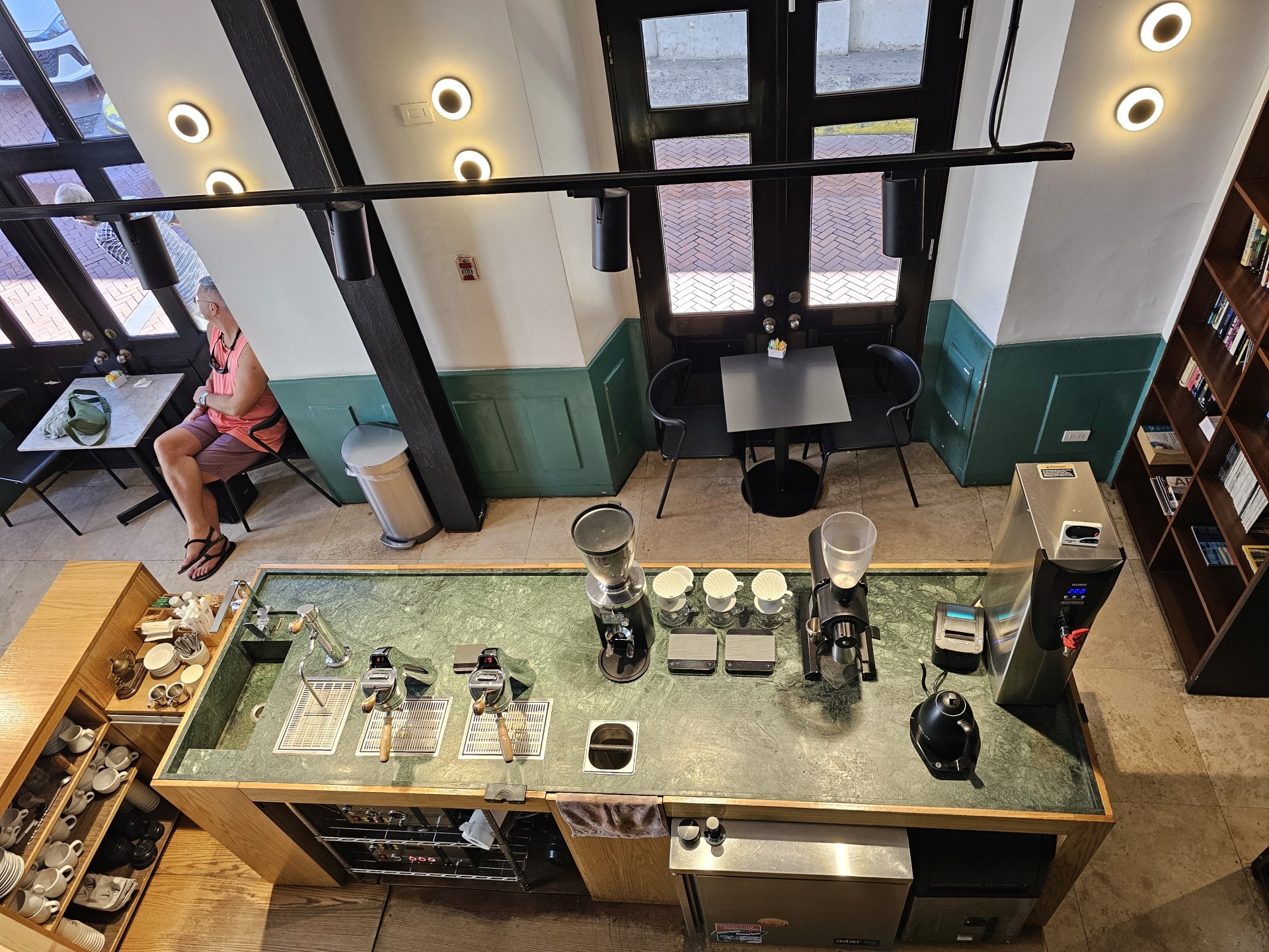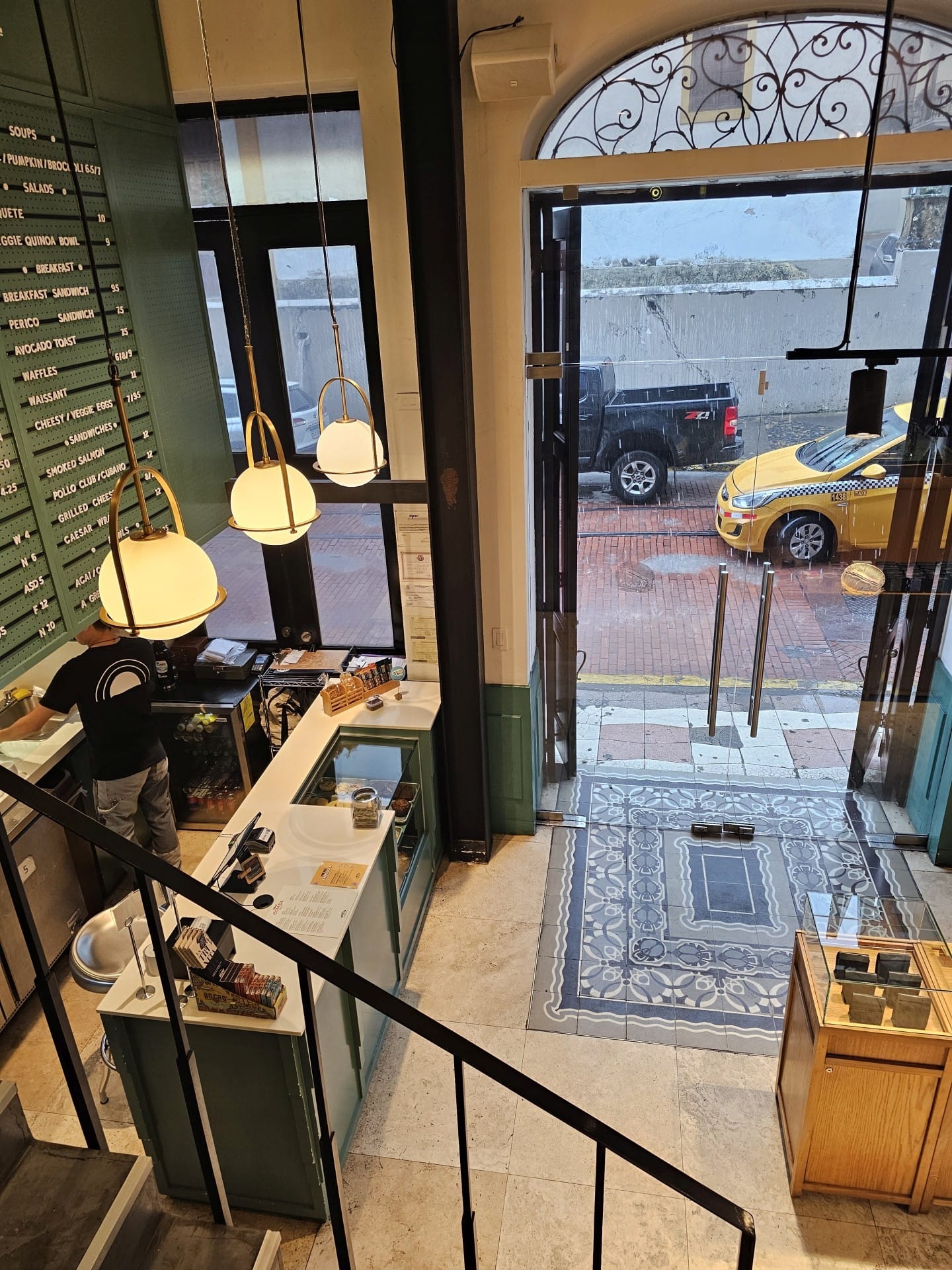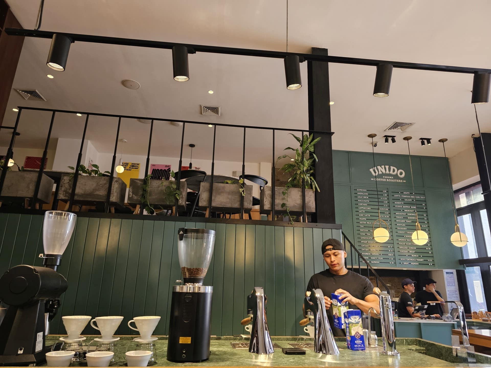 Nasleduje Unido káva, tá už stoji $3.5 espresso aj s daňami. Je tam brutálna zima, ale vonku ešte brutálnešie leje, tak si dáme svetríky a kempujeme, kým neprestane liať.