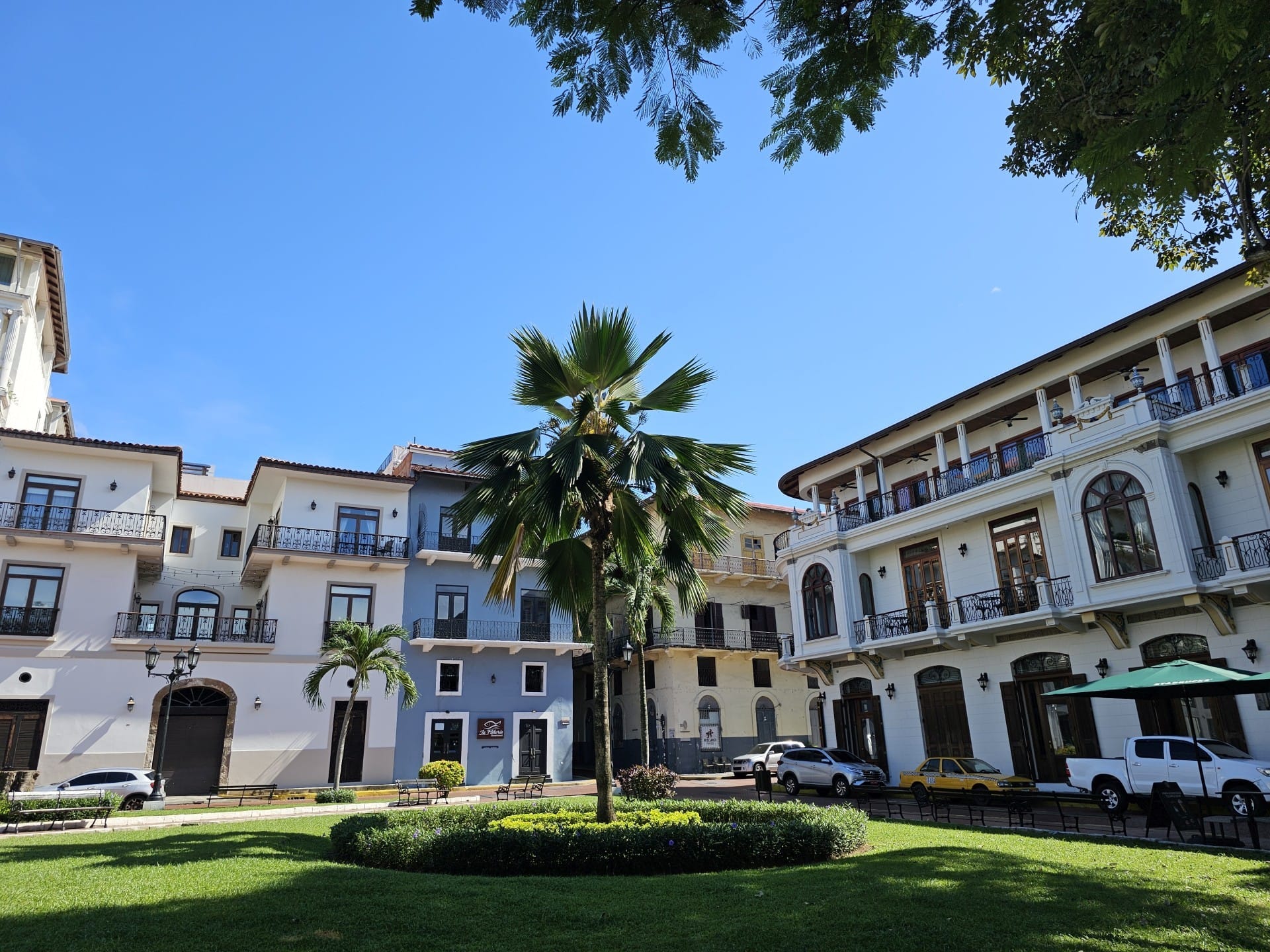 Keď doleje dáme si prechádzku starým mestom (Casco Viejo) až na Plaza Francia. Tu sa zase schyľuje k dažďu, tak sa schováme do pomníka kanálu a skúšame iný fresh. Ten nie je až taký dobrý.