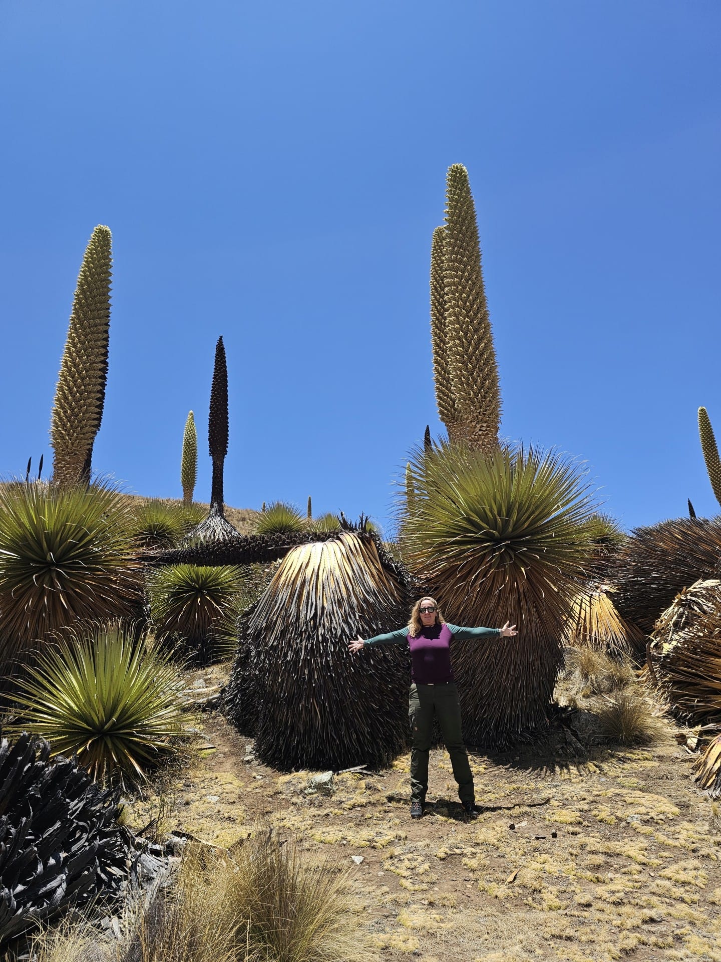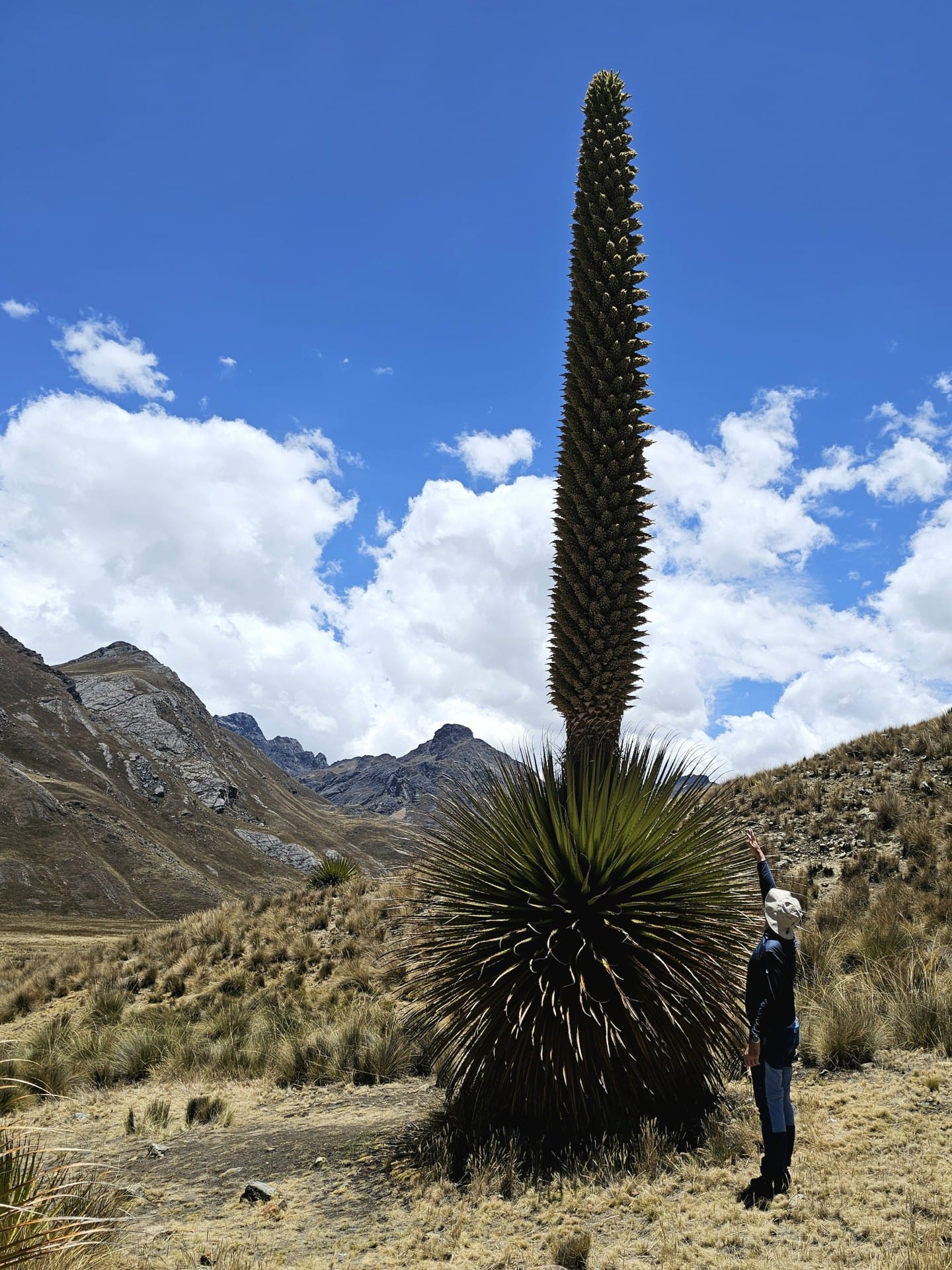 Vstup do národného parku je nad hranicou 4.000m a my využívame naše 30 dňové lístky. Na vrátnici vidíme gigantického kolibríka a prvú Puyu Raimondi (kráľovnú Ánd). Rastlina z čeľade Bromeliaceae (kam patrí aj ananás) rastie vo výškach medzi 2.400–4.200m, v Peru sa vyskytuje len na troch miestach. Máme šťastie, lebo tento rok kvitne Kráľovná v nevídanom množstve. Rastlina dozrieva až 100 rokov, potom zakvitne kvetom až 15m do výšky a zomrie. Podobne ako agáve. Na stonke má asi 20 tisíc kvietkov, kde dozrieva odhadom až 12 miliónov semien. Jej nektár je lákadlom pre veľa vtákov, aj pre čierneho kovovochvostého kolibríka (Metallura phoebe), alebo už spomínaného gigantického kolibríka (Patagona gigas).