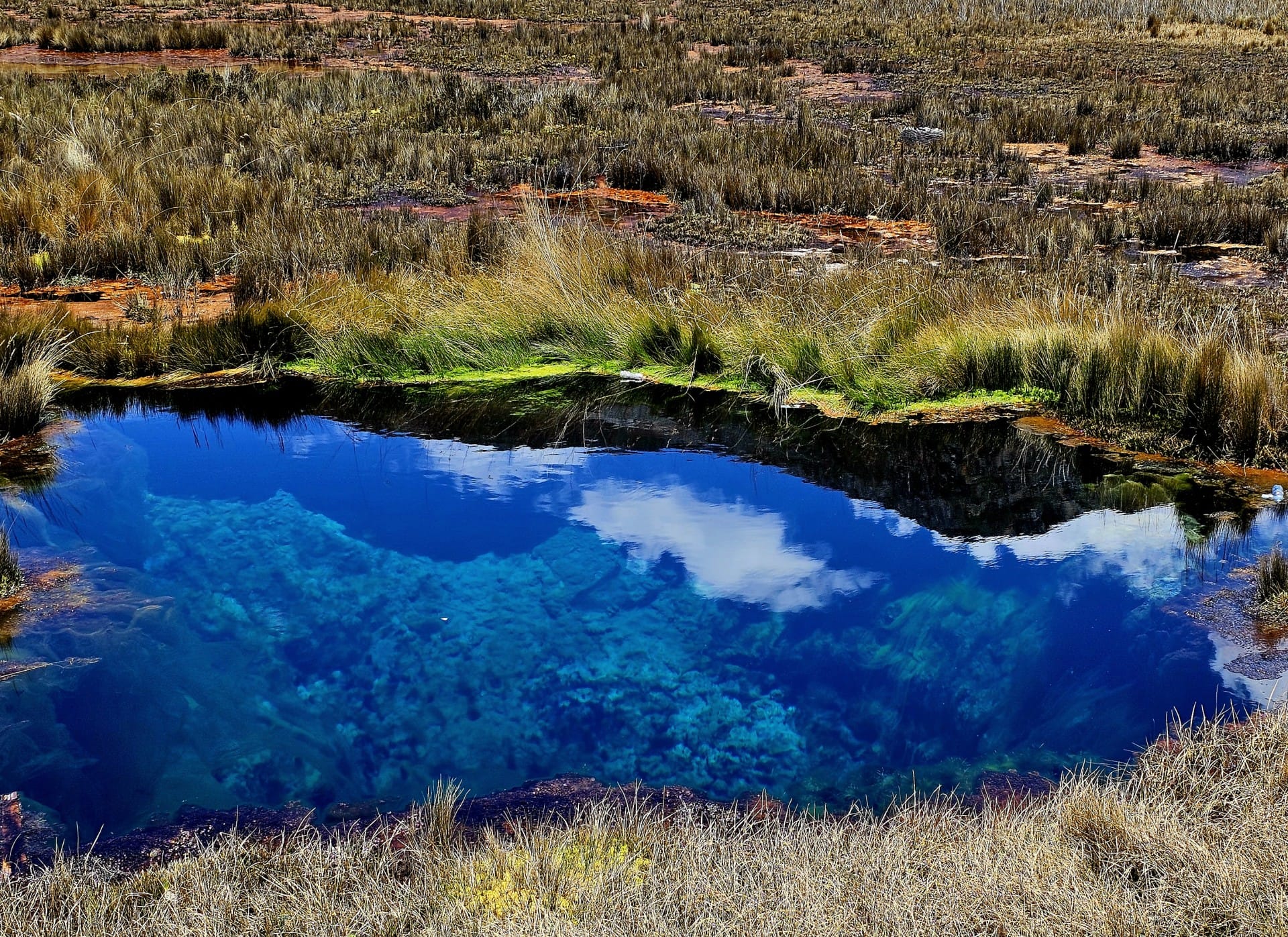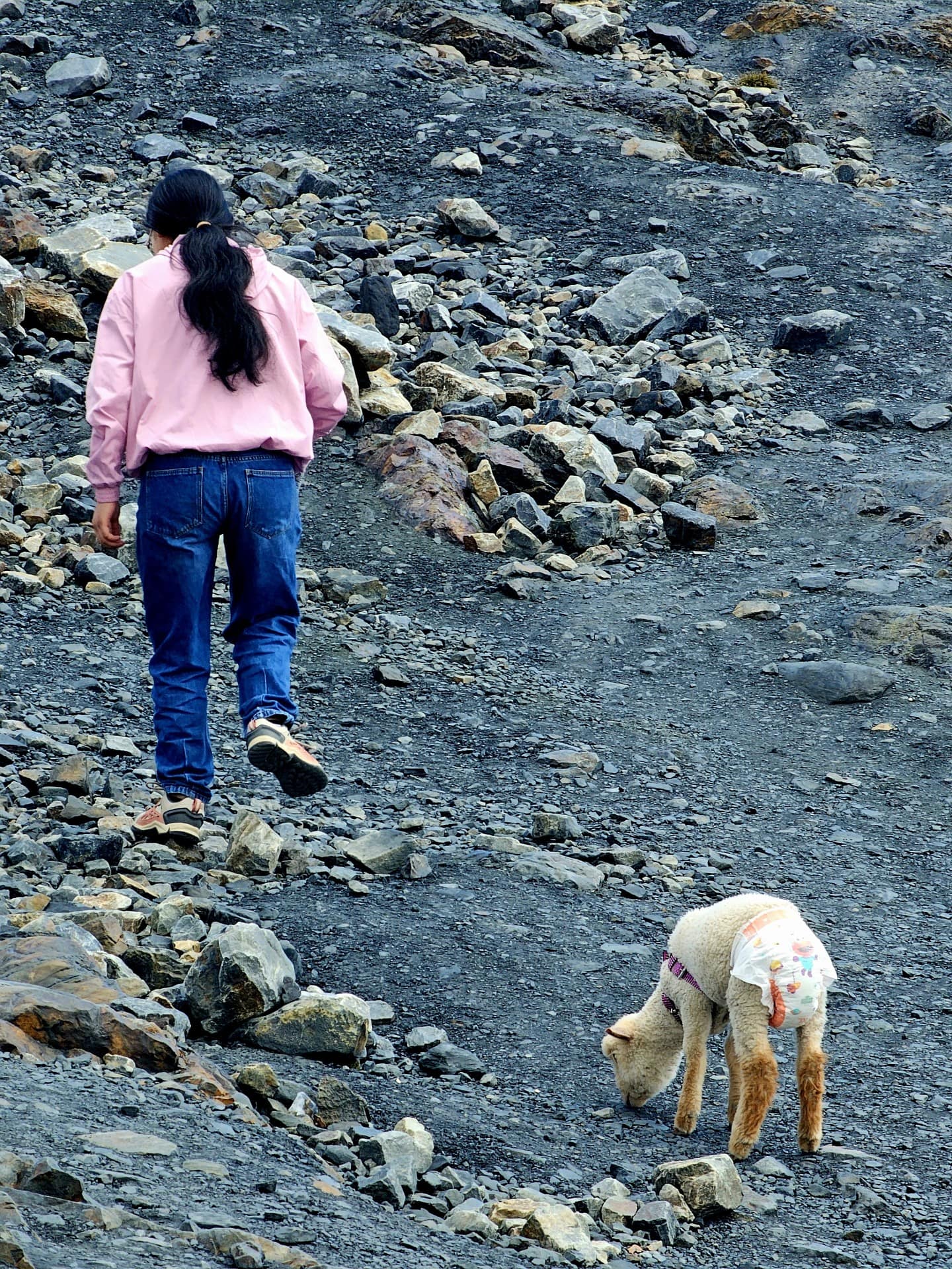 Po rýchlej foto prechádzke medzi velikými kvetmi Puya Raimondi, nás sprievodkyňa Elza preženie šikmo cez cestu ku mikro jazierku viacerých farieb. Zaujímavejšie sú ale nastajlované llamy, jedna poslušná a druhá nesmierne otrávená, tej sa veru nechce fotiť a pod chvíľou zloží dlhý krk na zem. Poplatok za fotku je dobrovoľný.