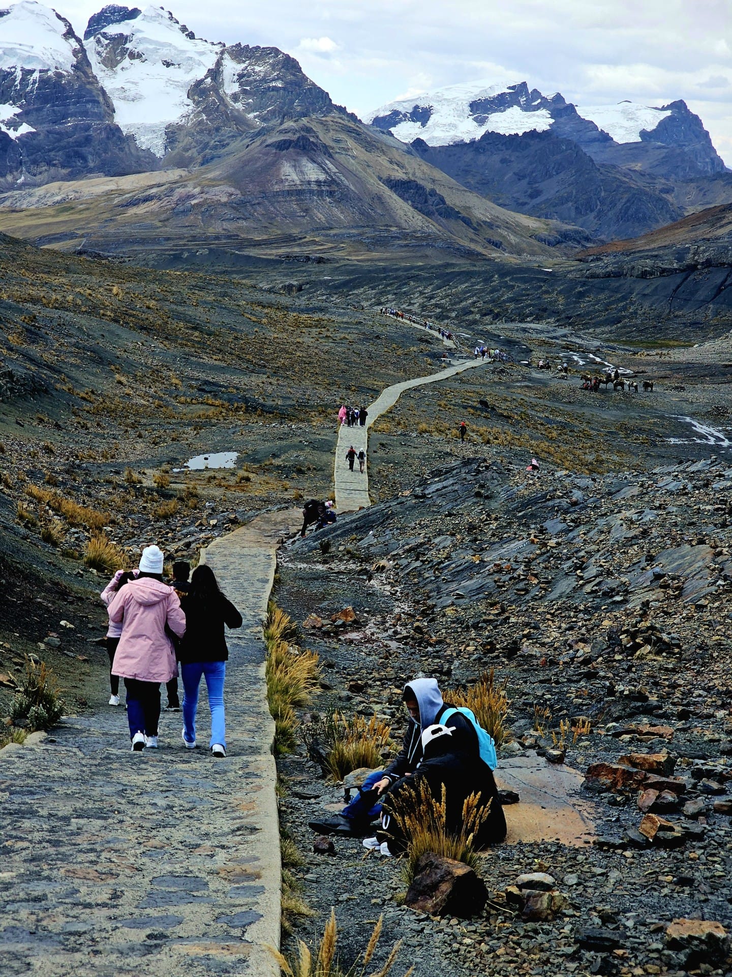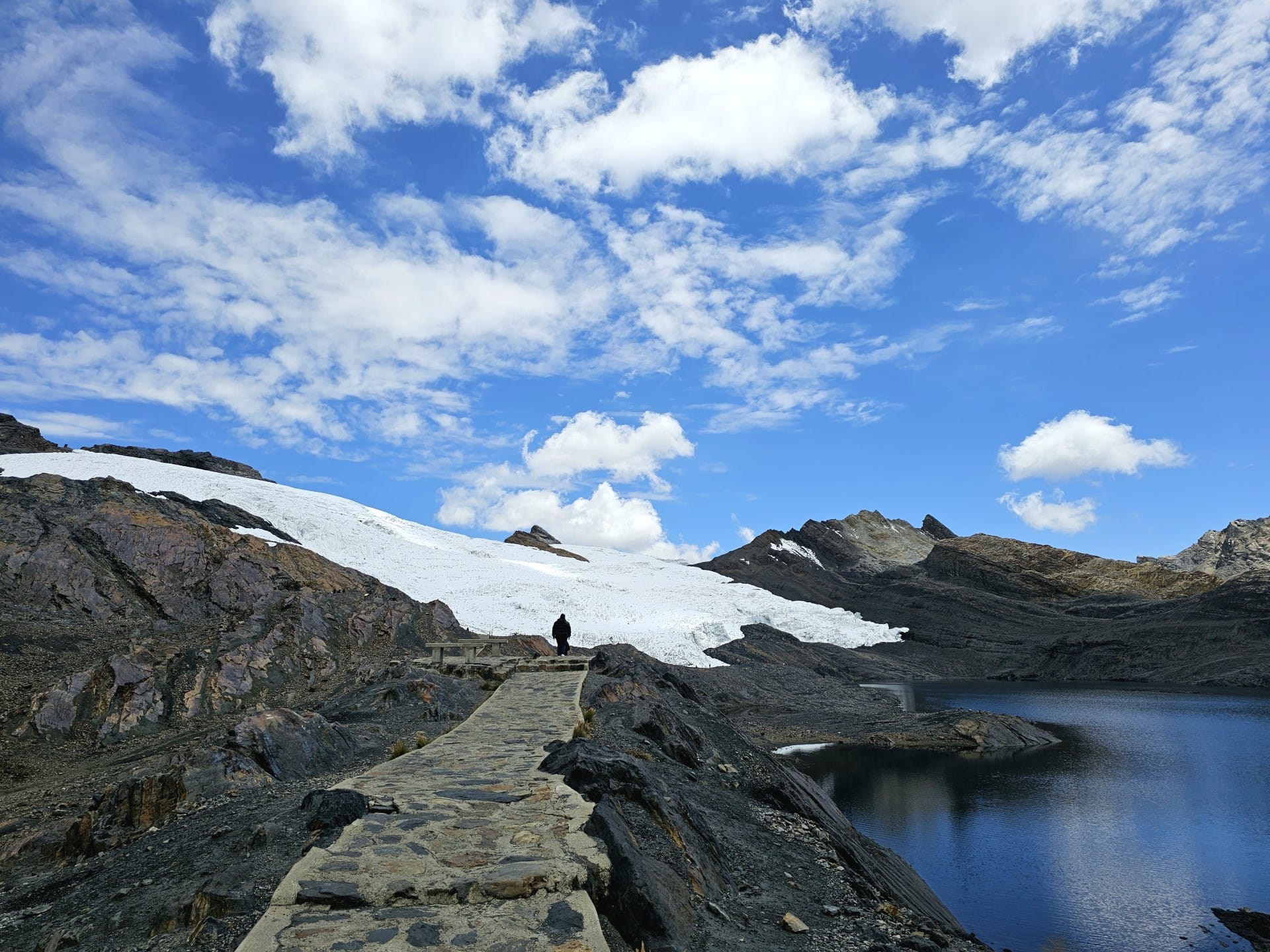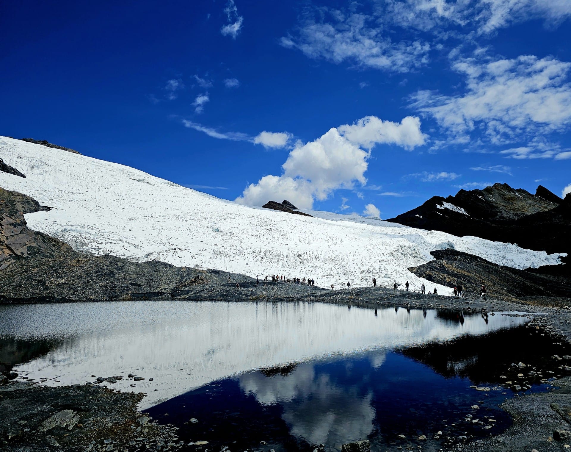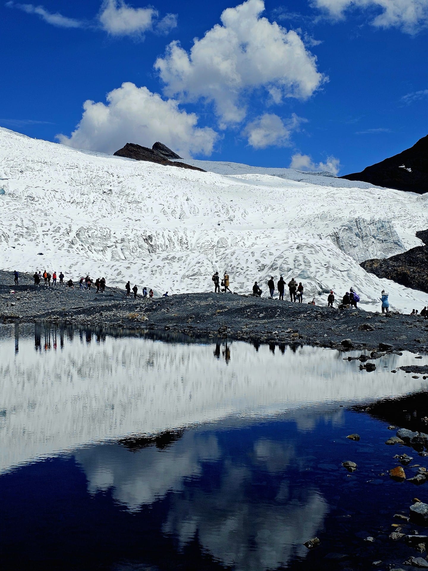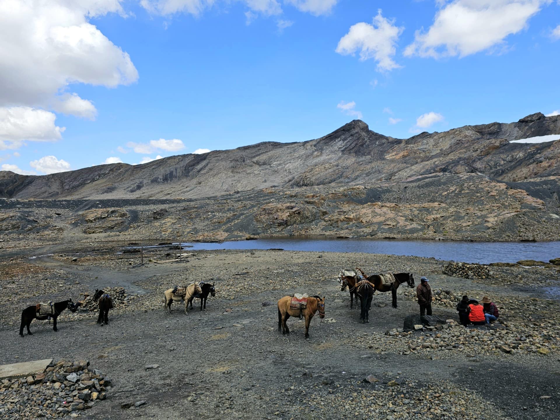Za 15 Sol si viacerí domáci prenajmú koňa, ktorý ich vyvezie až skoro hore. Kone idú dohora vo vlastnom pruhu, za dreveným zábradlím, vedľa 2.5 km dlhej vydláždenej cestičky pre chodcov. Ich pohoniči rýchlym krokom cupitajú vedľa nich. Hore pri ľadovci je to 4.987m, i keď tour predávajú do 5.200m. Ešte aj ľadovec sa stiahol, ale ploty neposunuli, takže sme dosť ďaleko od samotného ľadu. Bezohľadní turisti prekračujú tieto vzdialené zábrany, aby mali lepší záber a strážcovia parku na nich pískajú. Kedysi sa tu vraj lyžovalo a o pár dní na to v zmenárni vidíme aj poster. Vyzerá to ako stredne veľké lyžiarske stredisko za socíku.