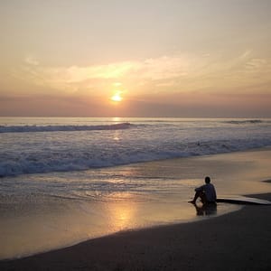 Tento deň som sa oplieskal viac ako za všetky iné dni dokopy. Plutva surfu mi sekla po oboch priehlavkoch, schytal som slabší sek dopravého obočia (bez modriny), raz slabší plesk do temena a doškrabal priehlavok a chrbát. Po výkone som asi dehydratovaný a mali sme len 1.2L vody, tak zbehneme z rozpálenéj pláže a v prvom supermarkete kupujeme Gatorade a 2L vody, hneď mi je lepšie. V Olame si dávame výborné šejky a kokosový orech, lebo chcem vidieť ako to otvárajú. Ako inak – mačetou, takže mojim švajčiarskym nožíkom to asi nebude také jednoduché. Zaujíma ma to, lebo v obchodoch sa kokosy predávajú bežne a majú vraj viac draslíka (voda) ako športové nápoje. Môj sendvič s údenou rybou je delikátny a Katkin grilovaný šalát tiež nie je na zahodenie, ale pesto je pre mňa bežná vec a ten šalátik čo mala posledne bol lepší. Zase zostaneme na nete až do 15:30 a potom po pláži zobrať si surf a surfovať. Na moje prekvapenie prvých pár pokusov je super, potom sa to začne zhoršovať, aj moj výkon, aj vlny. Na to všetko sa ešte kúpu ľudia pri mieste, kde surfujem (nebezpečné hlavne pre nich) a prkno skončí pár krát len niekoľko desiatok centrimetrov od nich. Skúšam sa aj pohnúť od nich, ale vlny ma zakaždým vypláchnu pri nich. Dvakrát oddychujem bez pohnutia na piesku a pokúšam sa spraviť aspoň jeden decentný zjazd pred západom slnka, ale nedá sa. Príliv vrcholí, vlny ma prevracajú aj sprknom (nie zboku na bok, ale zpredu dozadu) tak, že končím hore bruchom kŕčovito sa pridŕžajúc dosky nadomnou a po jednej pofidérnej jazde na breh sa rozhodnem to už viac neskúšať a vychutnať si západ s Katkou. Chlapík z Adrenaliny (u nich som robil kurz) prišiel ku mne na pláž, že už zatvára a odniesol si dosku aj tričko čo som od nich mal. To bolo od neho super, lebo ja som bol totálne odpálený. Ešte sme sa zastavili v talianskej pekárni na famózne cortado a kreolku s guava džemom – len o chlp lepšiu ako kedysi robili za socíku. Večer Katka nakuchtila ešte lepšiu zeleninku s vajcami ako omeleta predtým. Trochu nasypala na zem fene, ktorá asi mala problémy s mliekom a v tom momente sa zobudili havkovia pribehli jesť a cicať mamu a mačka sa tiež pchala k jedlu. Dopili sme vínko, poprali veci (ktoré do rána nevyschli) a pobalili čo sa dalo. Písal som denník, decká neboli v kuchyni žiadne, takže sa dnes nespievalo. V stane bolo teplo, lebo som bol rozohriaty zo surfu a bolo skoro a tak sa nám nedalo moc spať. Asi nepomohlo ani biele víno a káva.