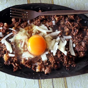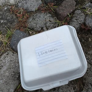 Konečne vydrankáme cikpauzu a jedlo, no na zastávke majú len koláčiky a surovú zeleninu. S Rumankom nakúpime koláčiky plnené fialovou zmesou. Majú rôzne tvary, ja som kúpil balíček naukladaných kociek. Roman vyhral, jeho selekcia bola lepšia. Od báb sme dostali surovú mrkvu a so šoférom sme dohodli, že nám zastane v naozajstnej reštaurácii. V najbližšej väčšej obci zastaneme pri mäsiarstve, kde visia kravské hlavy. Reštaurácia zíva prázdnotou a je naplnená pachom surového mäsa zmiešaného opálenými chlpmi. Niekde pod oknami zrejme stále prebieha zabíjačka. Tie hlavy kráv s čerstvými očami sú toho nemým svedkom. Vegetarián Rumanko a baby vypáli von, hľadať niečo bez mäsa. My sme takí hladní, že zostaneme a skúšame to trochu predýchať. Objednáme sisling, ktorý nám donesú na škvrčiacom liatinovom tanieri. Na kúskoch mäsa je volské oko. Mäso je nevyberané, veľa ťažko požuteľných i nemäsitých častí, ale popasujeme sa s tým.