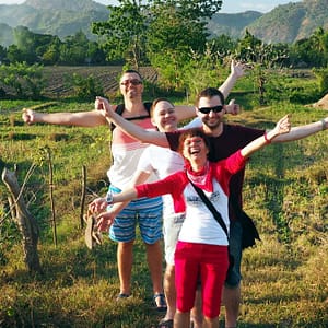 Po skorých raňajkách vyrážame na lokálne jeepney. V aute sme prví, pridá sa Francúzka so Španielkou a objaví sa aj čiperná babka zo včera. Od samej radosti si objednávame pivo do auta. Podajú nám ho cez okienko my im rovnako vrátime prázdne fľaše späť. Platíme 150 na hlavu. Babka si vypýta seniorský za 100. To je asi aj cena, čo domáci platia. Keď už to vyzerá, že neprídu žiadny bieli, nažedú do auta domácich čo sa zmestí a ide sa. Tešíme sa z pohľadu na lokálne nekomplikované deti, ktoré chápu, že v buse nemá zmysel pišťať, lebo to aj tak nič neprinesie.