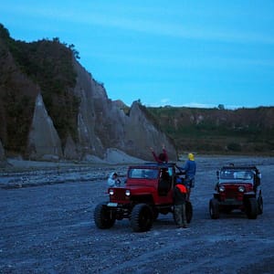 Malý žltý staručky 4×4 – Toyota Land Cruiser nás berie na korbu a sprievodca Edgar sedí na predku auta. Strastiplná jazda po tme a lávovom popole je riadne hegavá. Zlepší sa to trochu, keď sa rozvidnie a my obdivujeme magické údolie. Voda vyrezala do vulkanického piesku budovám podobné objekty. Vidíme diela Gaudího i kadejaké gotické katedrály. Prechody cez rieku sú najlepšie na fotenie, lebo častokrát na pár sekúnd zostaneme. Raz šofér vyskočí a rukami špliecha vodu na motor.