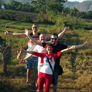 Pre zmenu sa na západ slnka vyberieme do kopcov. Vyjdeme na hrebeň, kde sa za plotom pasú kone a kravy. Posadíme sa a v kľude vychutnávame výhľad. Je nám od radosti do spevu, tak si cestou dole zatrilkujeme. Na obed sme si dali oprať, tak kontrolujeme ako schne naše prádlo. Predpokladáme, že nám ho dajú dole, no kým pochopíme, že ich treba upozorniť navlhne trochu večernou rosou.