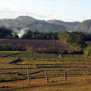 FR a ES zohnali privátny odvoz, ktorý nás po dlhších vyjednávačkách zoberie 7mich za 1100 na hlavu celú cestu až ku sopke. Celé sa to pretiahne aj preto, že šofér nevie po anglicky, tak zakaždým musíme zháňať dohadzovača, aby sme vyjasnili detaily. Ideme minivanom doslova cez sedem hôr a sedem dolín a prestáva nás to pomaly baviť. Zo začiatku mám pekné pohľady a výhľady, mihnú sa aj nejaké tie terasové políčka. Miestami to vyzerá ako v Peru. Potom je už cesta jednotvárnejšia a nás sa zmocňujú kadejaké potreby.
