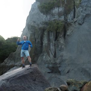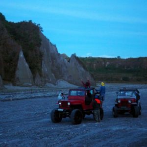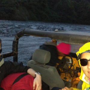 Malý žltý staručky 4×4 – Toyota Land Cruiser nás berie na korbu a sprievodca Edgar sedí na predku auta. Strastiplná jazda po tme a lávovom popole je riadne hegavá. Zlepší sa to trochu, keď sa rozvidnie a my obdivujeme magické údolie. Voda vyrezala do vulkanického piesku budovám podobné objekty. Vidíme diela Gaudího i kadejaké gotické katedrály. Prechody cez rieku sú najlepšie na fotenie, lebo častokrát na pár sekúnd zostaneme. Raz šofér vyskočí a rukami špliecha vodu na motor.