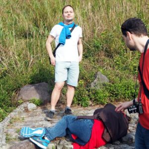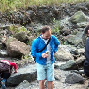 Zbehneme sa ešte pozrieť do krátera ku vode, zakývame Ajke s Rasťom a poďho dole. Počasie drží a oproti nám idú hordy neokrôchancov. Ani zaboha nepočkajú, kým prejdeme cez potok, takže často stojíme aj traja na kameňoch vo vode, kymácame sa zo strany na stranu, kým partia debilov prešpliecha okolo. Neuveriteľné..