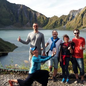 Francúzka sa už s nami moc nebaví, ale prebalí ešte aspoň Ajke prst. Na zajtra máme po sopke dohodnutý odvoz na letisko za 5000PHP, tak babám ponúkame odvoz do Manily. Tvária sa, že by možno aj šli. Pri večeri kecáme s novomanželmi z Čiech. V babkinom obchodíku majú limetky (kalamansi), tak ich kvôli vitamínu C kupujem. Aby sme neboli moc zdraví, primiešame do limonády okrem ľadu aj kolu a kvapku rumu. Na izbe spievame tak, že sa bojíme, či nás ráno vôbec zoberú na sopku. Ale nikto nepindá, buď sú radi z folklóru, alebo sa boja Ajky a jej hrozivo ofačovaného palca ukazujúceho večný Ajk do nebies.(lajk – like z Facebooku)
