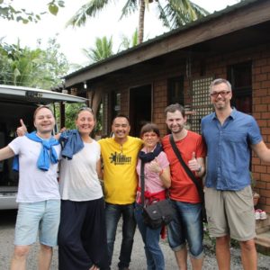 Po havárke dnes dávame oddychový a pozorovací deň u Alvina a na dedine. Prvý krát vidíme okolie izby a Alvin to tu má skutočne pekne urobené. Vkusne dekorované, čisté a priestranné. Raňajky máme v cene (500/osobu/noc). My dvaja sa najeme, pricestovanci ešte vyspávajú, lebo majú o sedem hodín menej. Vybehnem s telefónom na prechádzku po dedine s cieľom nájsť signál, lebo lokálny internet je dosť naprd a stále nemáme letenky. Keď sa ich naveľa naveľa podarí konečne kúpiť, oslávime to pivom a aby sme len nesedeli celý deň na hoteli, presunieme sa o dva domy ďalej ku babke na pivo. Pijeme veľkých červených koňov – silné pivo značky Red Horse – v pollitrových fľašiach a skúsime aj fantastické vyprážané kurence od babky predavačky. Vyzerá to byť lokálny divý odchov – veľmi nám chutí. Žiadna mrazená priemyslová produkcia.