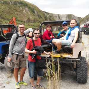 Po skorých raňajkách vyrážame na lokálne jeepney. V aute sme prví, pridá sa Francúzka so Španielkou a objaví sa aj čiperná babka zo včera. Od samej radosti si objednávame pivo do auta. Podajú nám ho cez okienko my im rovnako vrátime prázdne fľaše späť. Platíme 150 na hlavu. Babka si vypýta seniorský za 100. To je asi aj cena, čo domáci platia. Keď už to vyzerá, že neprídu žiadny bieli, nažedú do auta domácich čo sa zmestí a ide sa. Tešíme sa z pohľadu na lokálne nekomplikované deti, ktoré chápu, že v buse nemá zmysel pišťať, lebo to aj tak nič neprinesie.