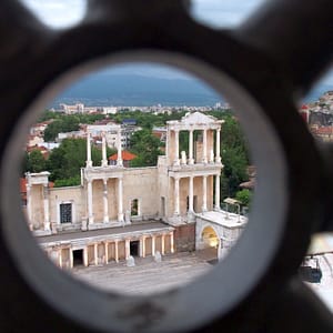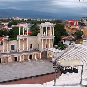 Ráno je zase upršaná jóga, ale v Burgase sa aspoň mám kde osprchovať a prezliecť pod slnečníkom. Veci mi ale aj tak omokli, lebo vietor ženie dážd pod striešku. Vo veľkom vyrazíme na diaľnicu, no cesta sa za mestom zúži a nie je to moc veľká sláva. Ako sa vzďalujeme od mora, počaasie sa zlepšuje. V Plovdive je už celkom slnečne. Podarí sa nám zaparkovať na dlažbe pred divadlom a vyrazíme do mesta. Park vyzerá, že bol parádny … predtým, ako ho začali prerábať. Teraz o jeho bývalej sláve svedčia iba stromy a fontánky. Podlahy a trávniky sú rozbité na kašu. Nájdeme pešú zónu a nevieme sa vynadívať nad rímskym štadiónom. Doslova sme nad ním, dnešné chodníky sú asi tri metre nad štadiónom, a my ho okukávame z chodníkov a platformy nad ním. Na vrchu námestíčka je príjemne vyzerajúci podnik pre domácich, tak si sadneme na pizzu a šalátik. Pizzu si objednáme polku takú a polku takú, donesú nám to už rozpolené, ako keby to odrezali z dvoch celých píz. A účtujú nám to ako polovicu z ceny každej. Bežné je, že účtujú cenu drahšej. Piza i šalátik su super. Keď sa posilníme ideme hľadať amfiteáter, ten by mal byť ešte lepší ako vrch dlhého štadiónu. Trochu sa zatúlame alejou omamne voňajúcich líp, potom a okolo velikej mešity s tureckou kaviarňou odbočíme do zlej uličky ale nakoniec po výstupe na kopec a náhodnej odbočky poza múzickú fakultu naďabíme na amfik. Ten my až takmer zoberie dych. Obeháme všetky možné uhly a obdivujeme ho zpoza nevkusného oplotenia a nakoniec sadmene do kaviarne a čučíme naň až do zotmenia. Cestou späť je mesto úplne plné, v centre všade sedia ľudia na sedákoch a lavičkách. Podsvietené farebné fontány striekajú na plné pecky. Na rohu divadla je posilka, tak si naplánujeme ranné cvičenie.