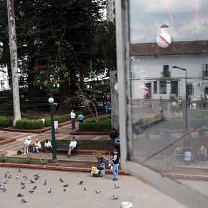 Po raňajkách si dáme prechádzku na stanicu metra a potom ešte asi 15minút ďalej na autobusovú stanicu. Riešime bus dole – na juh do Popayánu. Stihneme sa ešte vrátiť pred dvanástou, aby sme sa čekautli – odubytovali, navarili si obedík a sledovali inštalovanie vianočnej výzdoby v hosteli. Bus ide až 21:30, tak kempujeme v spoločenských priestoroch. Na večeru dojedáme omeletku z obeda, tentokrát vloženú v bagetke (sendvič) a ideme sa prejsť do parku Lleras, kde sme kedysi zavŕšili náš prvý pobyt v tomto meste. Sme úplne zhrození – je to brutálne komerčné námestie obklopené mega americky vyzerajúcimi priemyselnými reštauráciami.