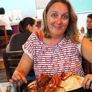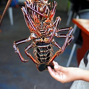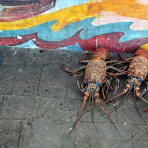 Večeriame homára na reštauračnej ulici. Je fajn, ale na tykadlách vidno, že boli trochu primrazené.