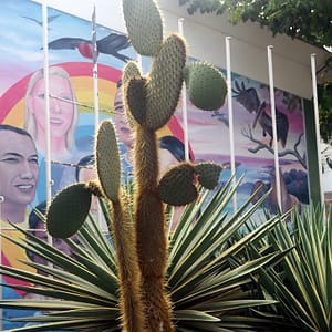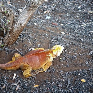 Na Galapágoch ešte platíme 100 dolkov za vstup do NP a v 30C teple nás berie bus do na opačnú stranu ostrova – ku kanálu, ktorý oddeľuje ostrov Baltra s amíkmi vybodovaným letiskom od ostrova Santa Cruz, ktorý je spoločenským centrom Galapágov. Okolie letiska je červená púštna škvara s kaktusmi a kríčkami.