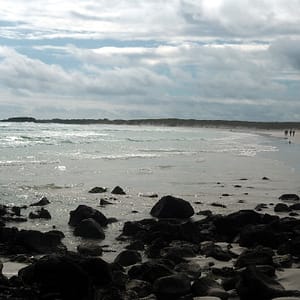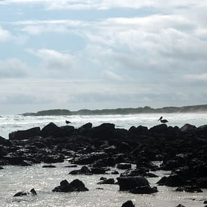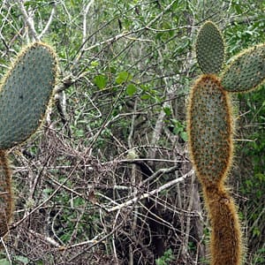 Chceli sme sa kôli internetu, a taktiež cene ubytka presunúť, ale nakoniec treba ráno niečo robiť a čas je pokročilý, tak potom radšej ideme na pláž do krytnačej zátoky (Tortuga Bay). Pláž tam je parádna, len trochu ďaleko. Kúsok za mestom je vstup do parku, kde sa zaregistrujeme a potom ideme skoro hodinu po chodníčku cez opunciový lesík ku moru. Našťastie je zatiahnuté, tak sa moc nepotíme, ale sme večer trochu priškvrknutí do červena.