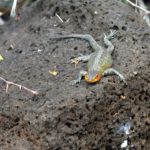 Na Galapágoch ešte platíme 100 dolkov za vstup do NP a v 30C teple nás berie bus do na opačnú stranu ostrova – ku kanálu, ktorý oddeľuje ostrov Baltra s amíkmi vybodovaným letiskom od ostrova Santa Cruz, ktorý je spoločenským centrom Galapágov. Okolie letiska je červená púštna škvara s kaktusmi a kríčkami.