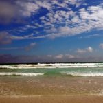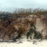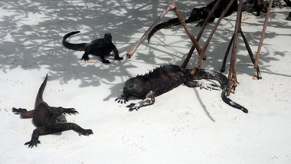 Pláž je velikánska, s bielym pieskom a mini útesíkmi vytesanými prílivom do dún. Sem tam je pohodený čierny vodný jašter. Občas vidíme aj nejakého nemotorne plávať vo vode. Na konci pláže sú skalky s mangrovmi a kopcom iguanov. V zátoke na druhej strane je tichá kúpacia pláž bez vĺn s hnedým prieskom pre deti. Nakoniec zostaneme v tieni na kúpacej pláži dlhšie ako sme chceli, lebo sa začnú trhať oblaky a nechceme ísť po slnku. Na konáre magrova nad nami navešiame oblečenie, aby robilo tieň, no príde pani ochranárka od parku a káže nám to všetko zvesiť. Chápem, že chce zachovávať nepoškvrnenú prírodu, ale príde mi to celkom vtipné, keď je tam pomaly stovka turistov. Očividne aj kopa domácich, čo tam chodí po víkendoch.