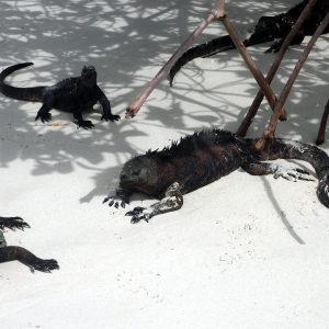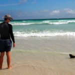 Chceli sme sa kôli internetu, a taktiež cene ubytka presunúť, ale nakoniec treba ráno niečo robiť a čas je pokročilý, tak potom radšej ideme na pláž do krytnačej zátoky (Tortuga Bay). Pláž tam je parádna, len trochu ďaleko. Kúsok za mestom je vstup do parku, kde sa zaregistrujeme a potom ideme skoro hodinu po chodníčku cez opunciový lesík ku moru. Našťastie je zatiahnuté, tak sa moc nepotíme, ale sme večer trochu priškvrknutí do červena.