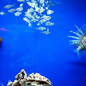 Domáca turistka sa 3x fotí s K pri akváriach. Majú tu aj bazénik, kde sa možno zverov dotýkať, no vidíme len nevábne podkovovité kraby. Podľa obrázkov tu mali kedysi aj žraloka, no ten asi niekomu odhryzol prst, tak ho dali do vedľajšej sušiarne na rolky.
