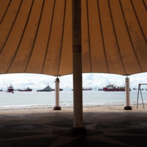 Na recepcii nafasujem rýchlovarnú konvicu a po čiernom čaji s krekrami vyrazíme pozreť lacnejšie ubytko. Našli sme o 11R s chaladničkou, čo je riziko, že by sme tam potom chceli chladiť niečo z duty free a to by nebolo dobré. Tak sa len okolo Finančného parku s bankovo vyzerajúcimi budovami a náprotivnými chatrčami, z ktorých by to bolo super blízko dochádzať do práce, presunieme po zastrešenom chodníku na pláž, kde si obzrieme morské múzeum s peknými akvárkami. Je tam aj kostra veľryby, ktorá uviazla na pláži a domáci ju oplotili, aby sa nemohla vrátiť. Dva dni zavíjala a potom sa ešte 5dní trápila. Ani ju nevyužili, šlo im len o kostru, ktorú dlho nemali ani kde vystaviť, lebo sa nikam nezmestila.